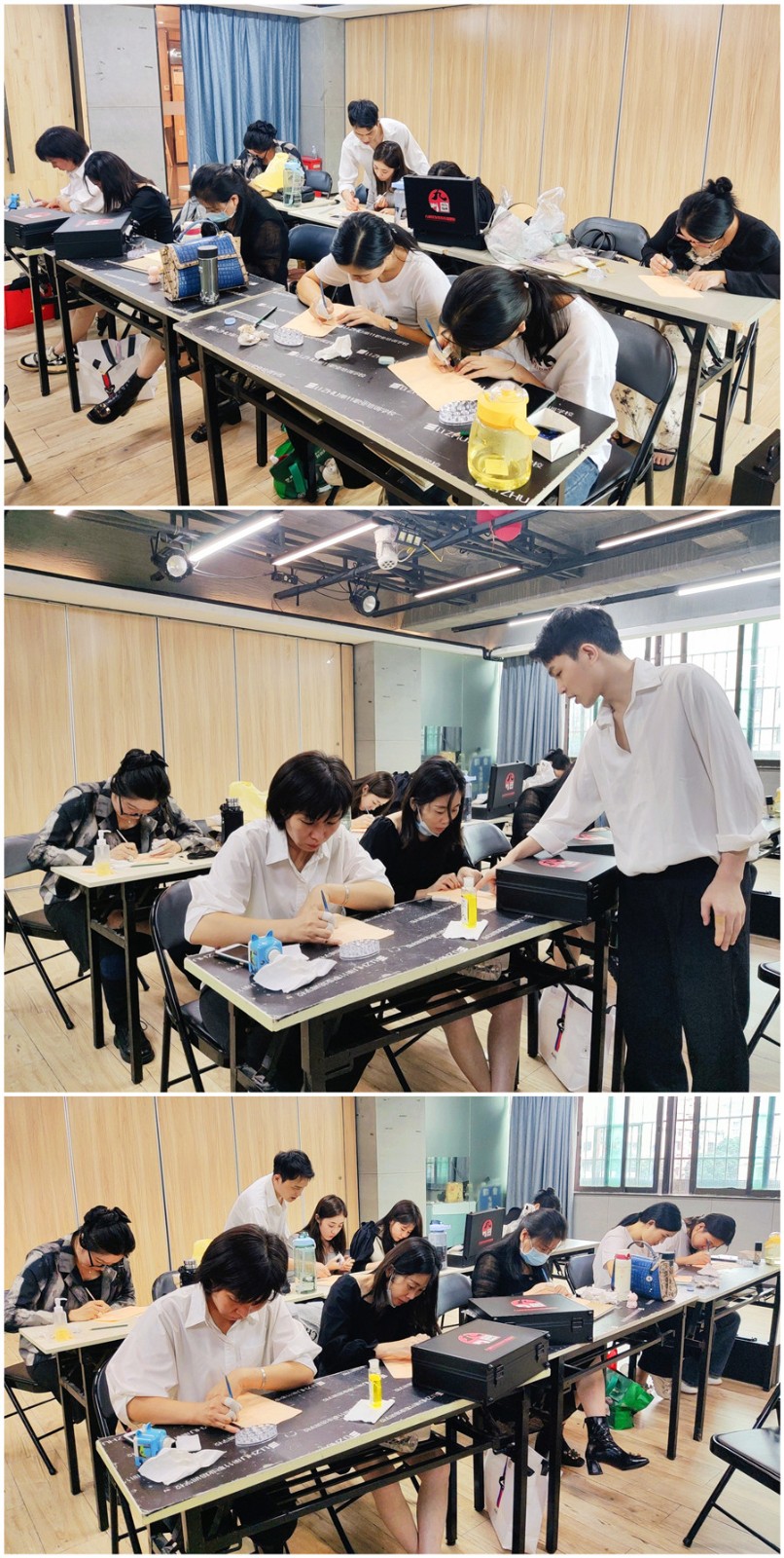 為期7天的《紋繡造型全能大師班》的課程已經(jīng)過半,同學(xué)們也在學(xué)習(xí)了色料的知識(shí)后,開始在仿皮上進(jìn)行眉眼唇的填色練習(xí),讓我們共同等待同學(xué)們進(jìn)行真人實(shí)操的練習(xí)吧!