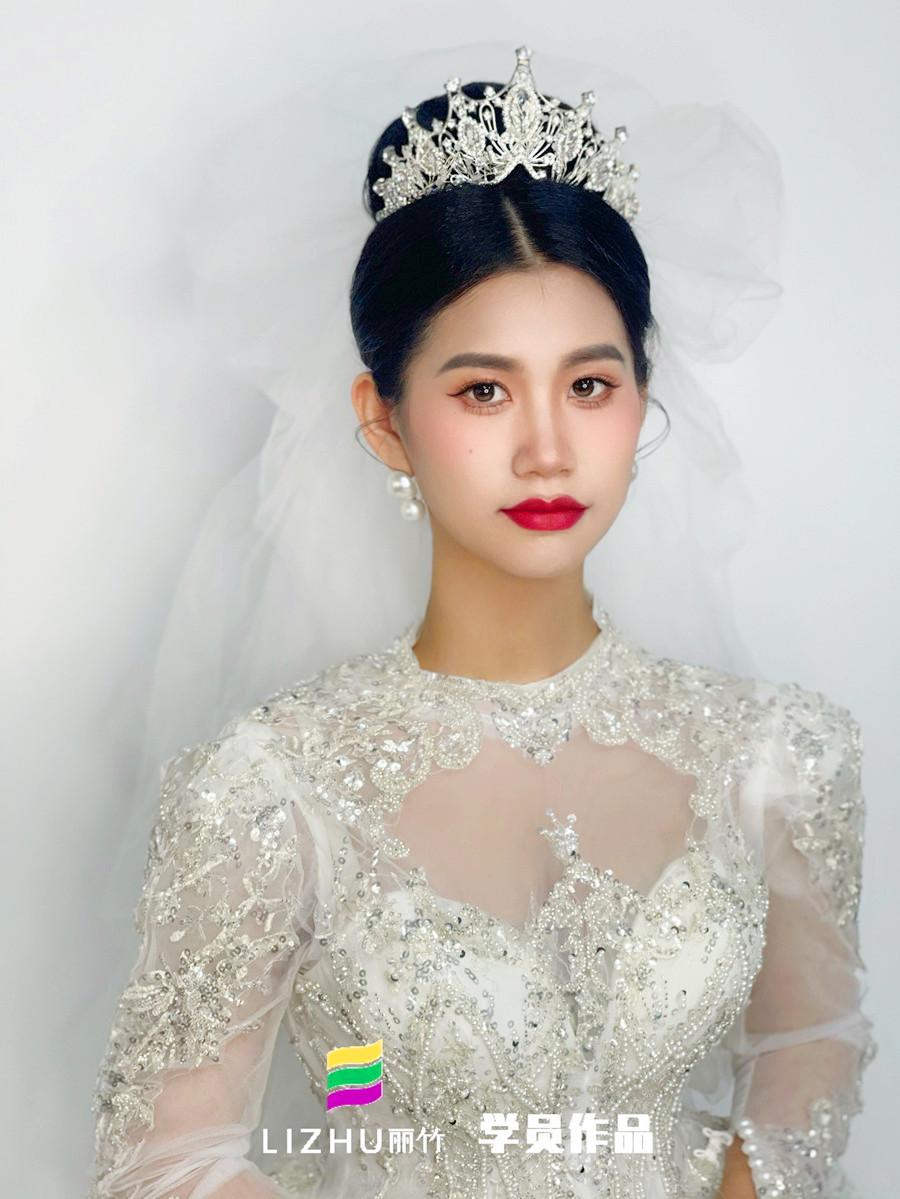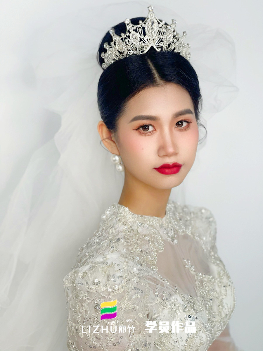 廣西新娘化妝培訓(xùn)、廣西化妝新娘短期班(麗竹新娘彩妝)作品---婚禮新娘造型:赫本風(fēng)復(fù)古氣質(zhì)高盤發(fā),溫柔透凈妝容素雅精致。珍珠鉆石服飾與配飾,打造永恒的經(jīng)典之美,讓新娘美出新的高度。想知道廣西哪里可以學(xué)新娘化妝?或是想知道廣西新娘化妝培訓(xùn)哪家好?廣西新娘化妝學(xué)校-南寧市麗竹職業(yè)培訓(xùn)學(xué)校(麗竹學(xué)校)化妝專業(yè),業(yè)實(shí)力與高口碑...