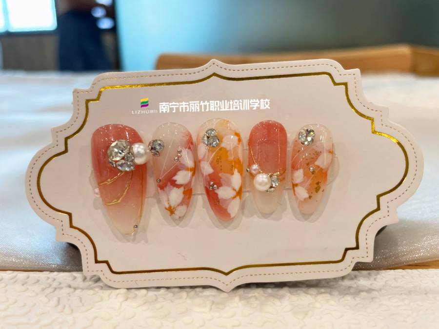 零基礎學美甲造型、南寧美甲進修提升:在今天南寧美甲實訓的課堂上,和我們一起看看正在南寧學美甲造型(麗竹美甲培訓)學員作品---暈染花卉美甲吧!如果你近期有學美甲技術的計劃,建議你趕緊趁著麗竹學校美甲專業(yè)正在進行年末感恩答謝會學費特惠活動仍在進行中,趕緊通過下面的方式聯(lián)系我們報名吧!