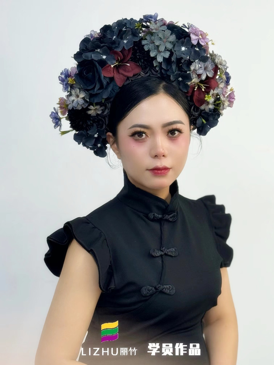 廣西化妝寫真、廣西寫真培訓(xùn)化妝:彩妝零基礎(chǔ)學(xué)員作品---國風(fēng)簪花造型。將屬于中國非物質(zhì)文化遺產(chǎn)的蟳埔女“簪花圍”佩戴在頭上,增加了一種生機勃勃、生動活潑的生命氣息。而在廣西彩妝造型正規(guī)學(xué)校(麗竹彩妝造型正規(guī)學(xué)校)里,廣西化妝高彩班的同學(xué)們也在認真進行著國風(fēng)簪花造型的創(chuàng)作。