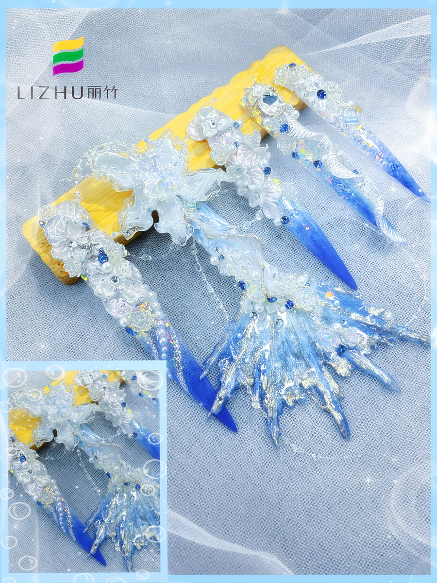 南寧美甲培訓(xùn)(麗竹美甲培訓(xùn))創(chuàng)意雕花美甲:冰川星墜